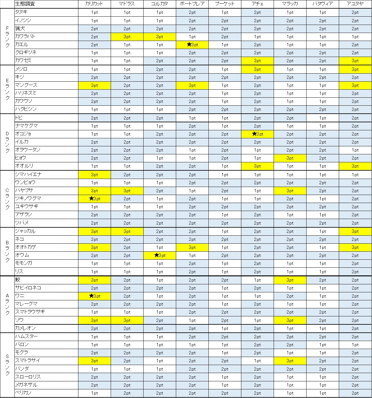 3ポイントの部分に星マークがついているのは、その総督のみポイントが3になる報告です。