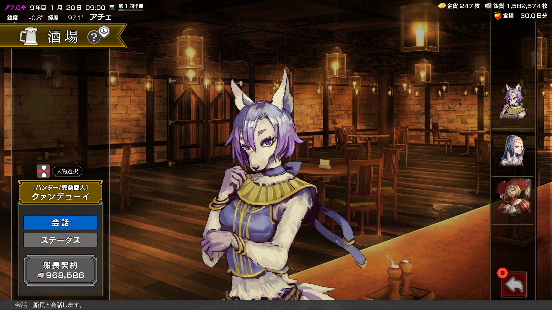 能力の割には契約金の高いキャラも多く、特に後半は仲間を増やす必要がなさそうに見えますが、増えれば増えるだけもらえる金額も増え、料理で関連スキルを盛ったり船を更新してあげれば最終的には別働艦隊からの収入がメインの金策になり得ます。