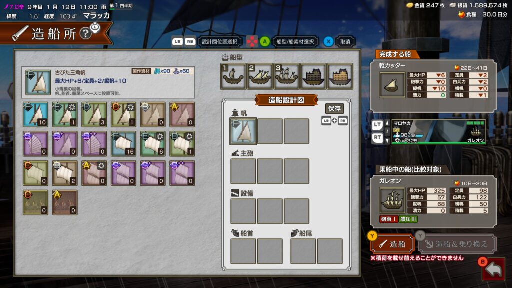 このゲームは造船後に部品を交換等できないため、何度も船を造るシステムになっています。